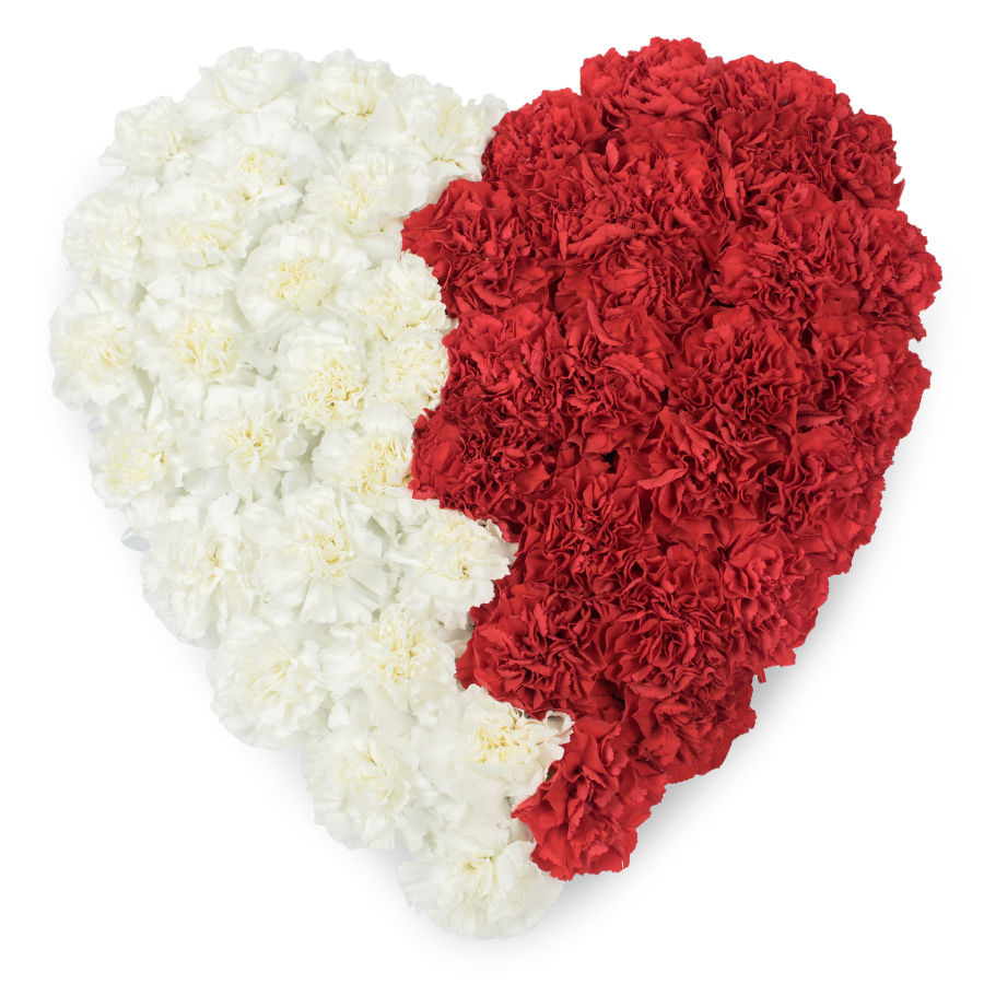 Elevate your gifting experience with our Vibrant Carnation Heart Bouquet. This exclusive arrangement marries the gentle charm of white carnations with the passionate allure of red ones, arranged in a heart form that resonates with emotion.
